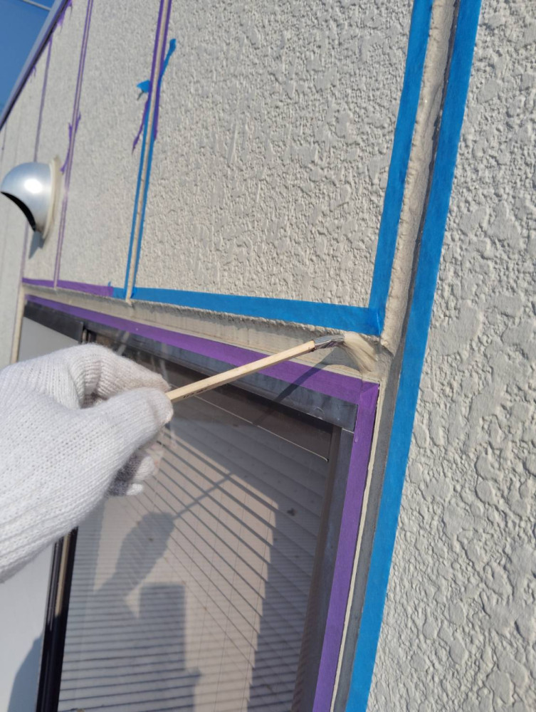 新しいシーリング材がしっかり密着するよう、専用のプライマーを塗布します。